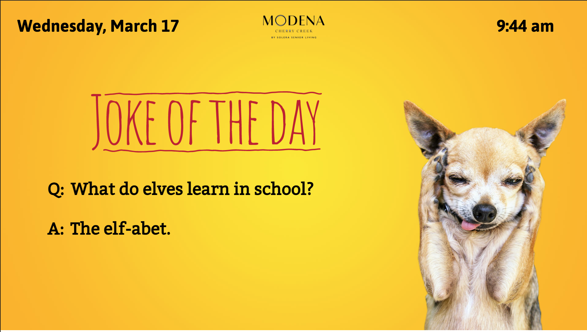 The joke of the day slide is a system slide. If selected, it will automatically display one joke per day on the digital signage screen.